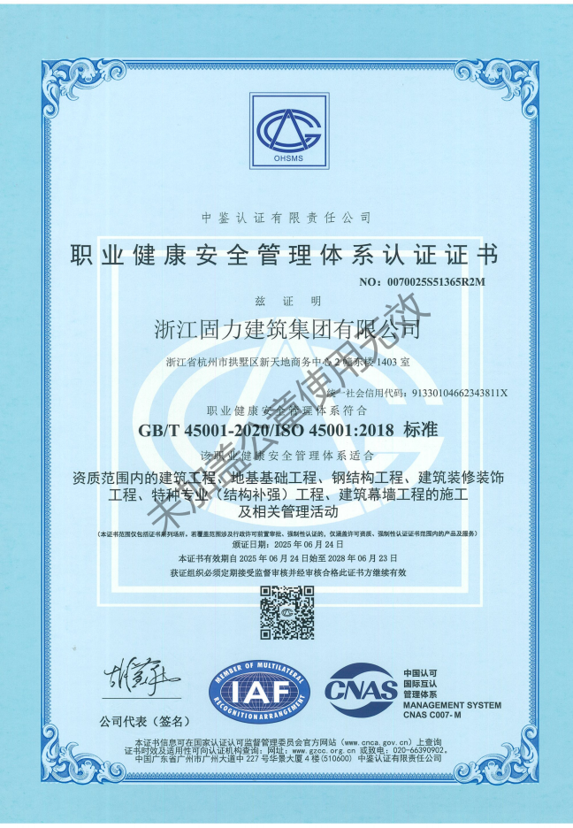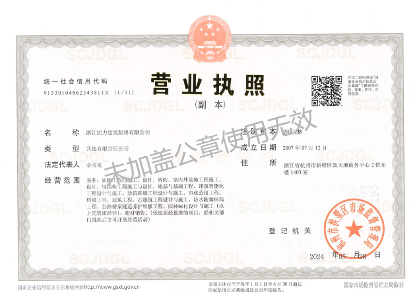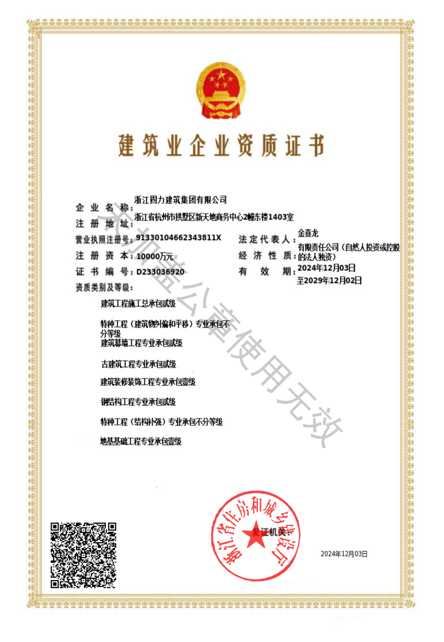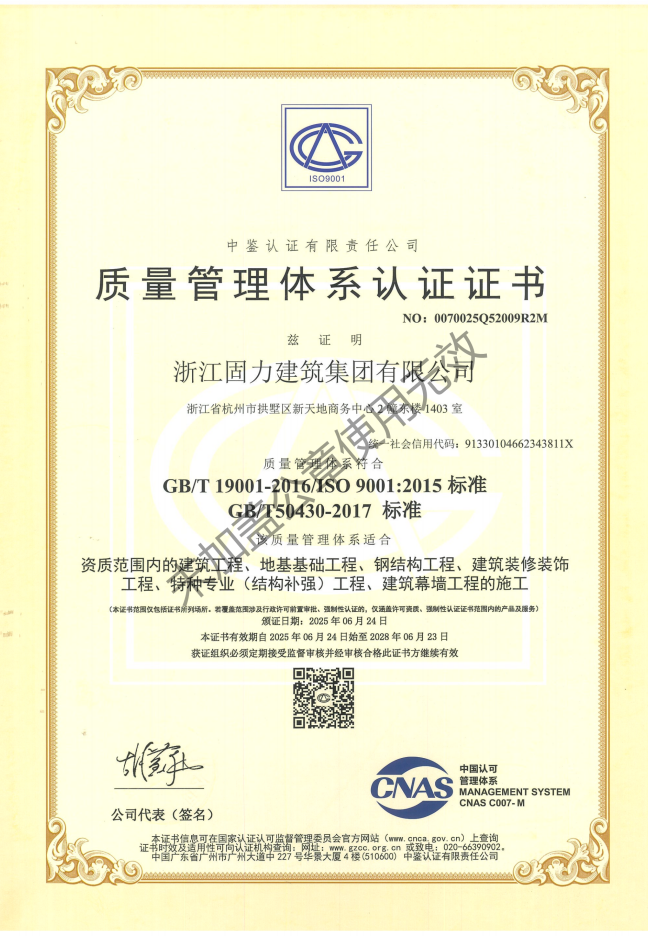 浙江固力建筑集团有限公司成立于 2007 年,是一家集科研、技术、设计、施工为一体的建筑高新科技企业。公司锚定主业,在建筑专业承包领域一专多强 共同发展,主营业务特种加固结构 改造、装饰装修、钢结构、地基基础、建筑幕墙等。在建筑专业承包领域具有完备的系统解决方案,为客户提供一站式服务。